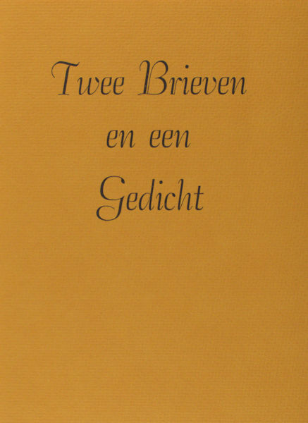 l Boelhouwer, Mariet. The Queen & de Koningin, een brief aan Marijke Stappert-Eggen. Eikeldoorpers.Bomans, Godfried. Een liefde. Aldo Pers.Distant Cries from St. Kilda. De Pers Achter de Muren.Beveren, W.A. de. À mademoiselle S. de Beveren. ZonderDak.Rebergen, Roos. Open Brief. De Eilerland Pers.Huygens, Constantijn. Twee brieven en een gedicht. De Uitvreter.