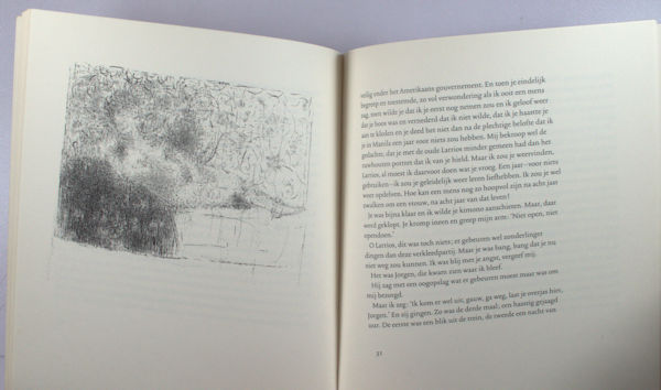 l Typografie en band Suzanne Heynemann. Illustraties Marjolein Varekamp (8 tekeningen). Het verhaal is opgenomen in Schuim en Asch. Oplage 175 genummerde exemplaren Deze uitgave werd bekroond als één van de 50 best verzorgde boeken van 1986